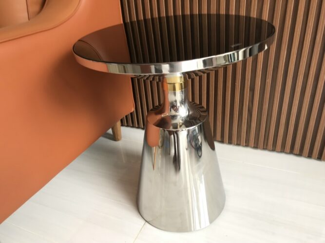 - Vật liệu: Inox dập tạo hình dáng bàn, mạ bóng sáng công nghệ PVD